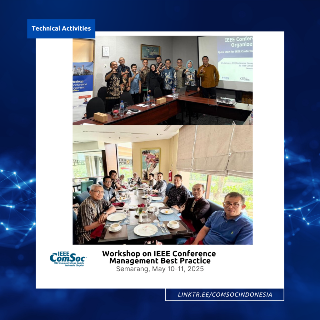 On Saturday and Sunday, May 10–11, 2025, the IEEE Communications Society (ComSoc) Indonesia Chapter successfully organized the Workshop on IEEE Conference Management Best Practice in Semarang, Central Java. This two-day intensive workshop was designed to equip participants with a comprehensive understanding of how to professionally and effectively manage IEEE conferences in accordance with global standards. The event brought together individuals from academic institutions, conference committees, and professional organizations who are actively involved in planning and executing scholarly conferences. Through a structured agenda covering nine critical topics, participants learned about the entire lifecycle of IEEE conference organization. The sessions included an introduction to IEEE conferences, a review of IEEE Indonesia Section rules and policies, the application and publication process, financial and budgeting aspects, the technical program including quality and standards, and the use of various IEEE-approved conference management tools such as CrossCheck, PDF eXpress, and e-Copyright Form (eCF). Furthermore, participants were guided through the process of preparing IEEE Xplore-compliant papers, the technical preparation of conference proceedings, and the management of conference submissions and reviews using the EDAS platform.